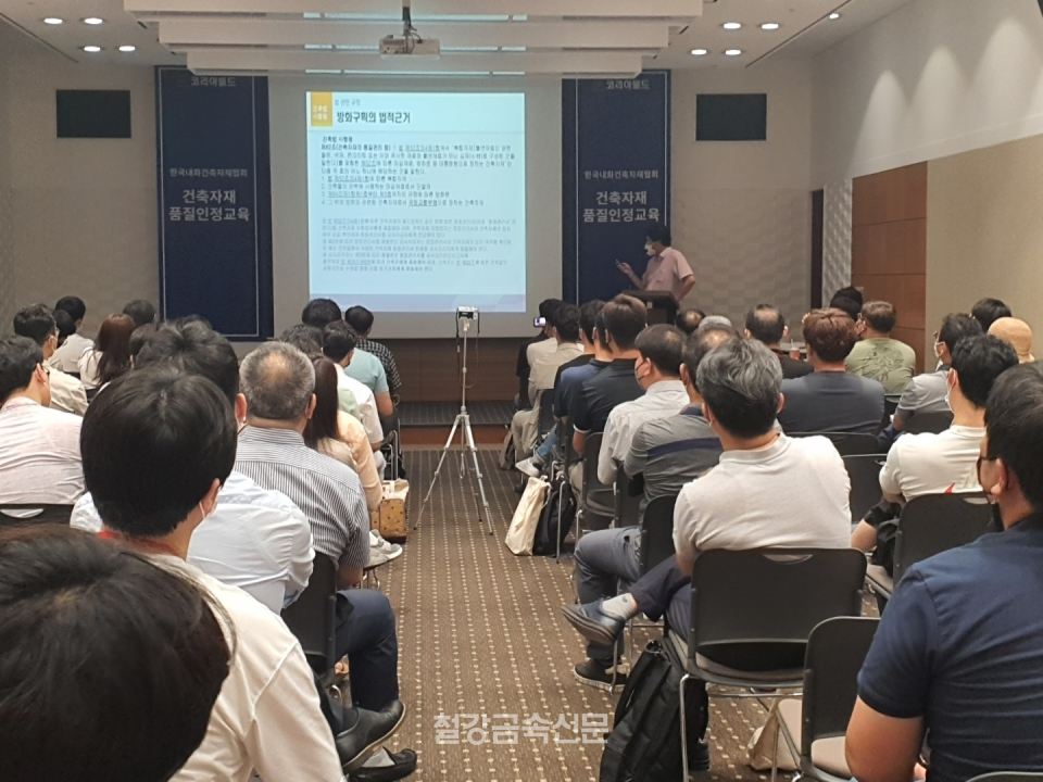 협회에 따르면 이날 교육은 실물모형시험의 성능 기준과 시험방법, 마감재료 및 내화구조 품질인정 등 건축자재 품질인정제도와 관련해 3시간가량 이뤄졌다. 건축자재 품질인정제도는 건축자재가 화재안전 성능에 맞게 생산되는지 인정한 후 이를 유통 · 시공에 이르게 하는 제도다. 내화구조, 방화문, 방화셔터, 내화채움구조, 샌드위치패널 등이 인정 대상이다.