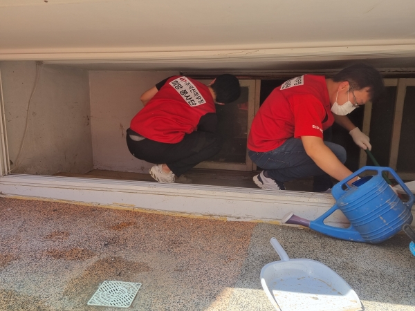 덕신하우징 희망봉사단은 침수 가구 현장에서 집 안에 토사 청소, 침수 잔해물 닦아내기, 물에 젖은 실내등 교체 등 환경정비를 실시했다.