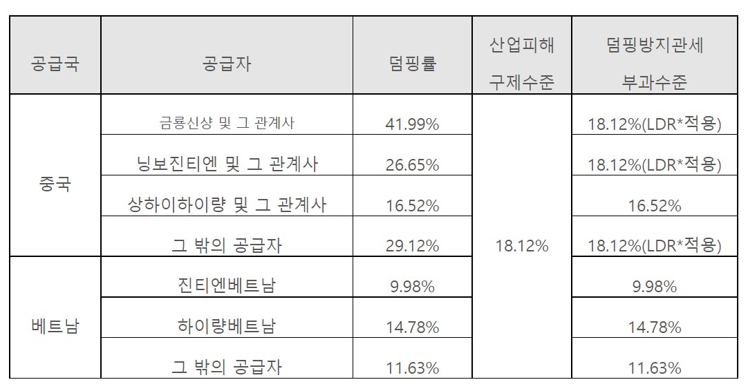 향후 5년 간 9.98~18.12% AD관세 부과 결정…실제 부과 여부 기재부로 넘어가