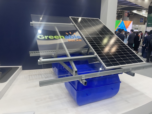 이어 포스코는 친환경에너지 소재 브랜드‘Greenable(그린어블)’ 중 포스맥을 사용한 수상 태양광 지지구조물과 솔라파인도 선보였다.