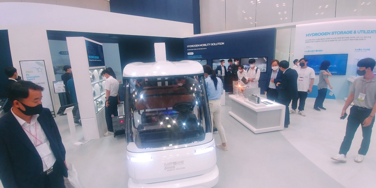 포스코모빌리티솔루션(대표 김학용)이 일산 킨텍스에서 열린 수소모빌리티쇼(H2 MEET 2022)에서 소수전기차의 핵심 부품인 구동용 모터코아와 연료전지분리판을 선뵀다. 이번 전시회에서 포스코모빌리티솔루션의 그룹 내 비중 확대도 눈에 띈다.