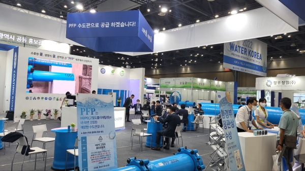 수도관 전문 제조기업 코팅코리아(대표 최규호)가 위생적이고 녹슬지 않는 수도관인 PFP를 가지고 대한민국 물 산업 최대 박람회인 '2022 워터코리아'에 참가했다.