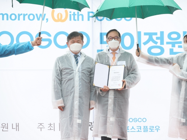포스코플로우(사장 김광수)가 9월 2일 광양시 성황근린공원에서 ‘포스코 도이정원 숲’ 착공식을 열었다.
