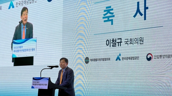 이어 축사에 나선 이철규 국민의힘 의원은 러시아-우크라이나 전쟁 이후 에너지 가격 급등 상황이 닥치며 자원부존량이 적은 우리나라 산업계의 위기가 발생하고 있다며 "해외 자원 개발 및 확보가 우리 경제 지평을 넓혀 경제의 버팀목이 될 것"이라며 해외 자원 개발의 중요성을 강조했다.