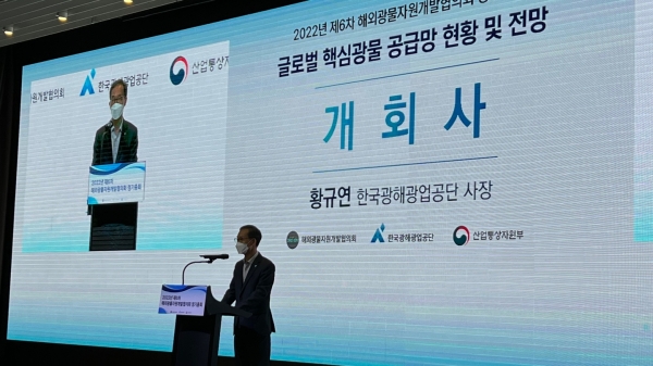 황규연 KOMIR 사장은 개회사에서 "2050년 탄소 중립의 과정에서 핵심 광물 확보를 위한 노력을 경주하고 있다"라며 이러한 배경 속에서 핵심 광물의 수요가 전 세계적으로 급증할 것이라 내다봤다. 황 사장은 "니켈, 리튬, 코발트, 흑연 등 배터리 원료로 쓰이는 광물은 2040년 수요량이 2020년대의 20배 이상 될 것"이라며 해당 광물들의 안정적인 확보가 필요함을 강조했다.