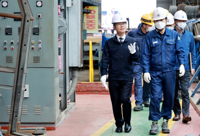 이날 이정식 장관은 동일산업 봉강사업부 공장을 방문했다. 동일산업은 특수강봉강 및 합금철을 제조·납품하는 업체로, 태풍 힌남노로 인해 사업장의 약 83%가 침수됐다. 특히 주력 생산라인인 ‘봉강사업장’은 1m 이상 침수 피해를 보았다.