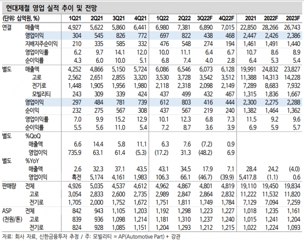 신한금융투자 기업분석부 박광래 연구원(최민우 연구원 참여)은 현대제철의 3분기 실적이 시장 기대치를 하회할 것이라고 전망했다. 박 연구원이 예상하는 현대제철의 3분기 별도 기준 매출액은 6조730억원, 영업이익은 4,157억원이다. 각각 직전 분기 대비 7.2%, 48.2% 감소할 것이라 내다봤다.