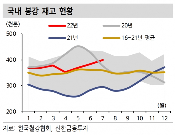 박광래 연구원은 3분기 실적 부진 전망에 대해 “차강판 가격 인상분이 8월 실적부터 반영되는 점은 긍정적이나 이는 글로벌 경기 침체와 8월 폭우로 인한 수요 감소로 상쇄될 전망이다”라며 “9월 태풍 ‘힌남노’로 인한 포항공장 침수와 이에 따른 가동 중단의 영향도 3 분기 실적에 반영될 예정”이라고 지적했다.