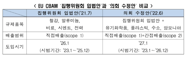 전경련은 지난 6월 22일 통과된 EU CBAM 의회 수정안에 대해 이 같은 취지의 서한을 보냈다고 28일 밝혔다. 수정안은 기존 집행위원회 입법안보다 규제가 강화됐다. 규제품목 수가 철강, 알루미늄, 비료, 시멘트, 전력 등 5개에서 유기화학품, 플라스틱, 수소, 암모니아 등이 추가돼 9개로 늘어났다.