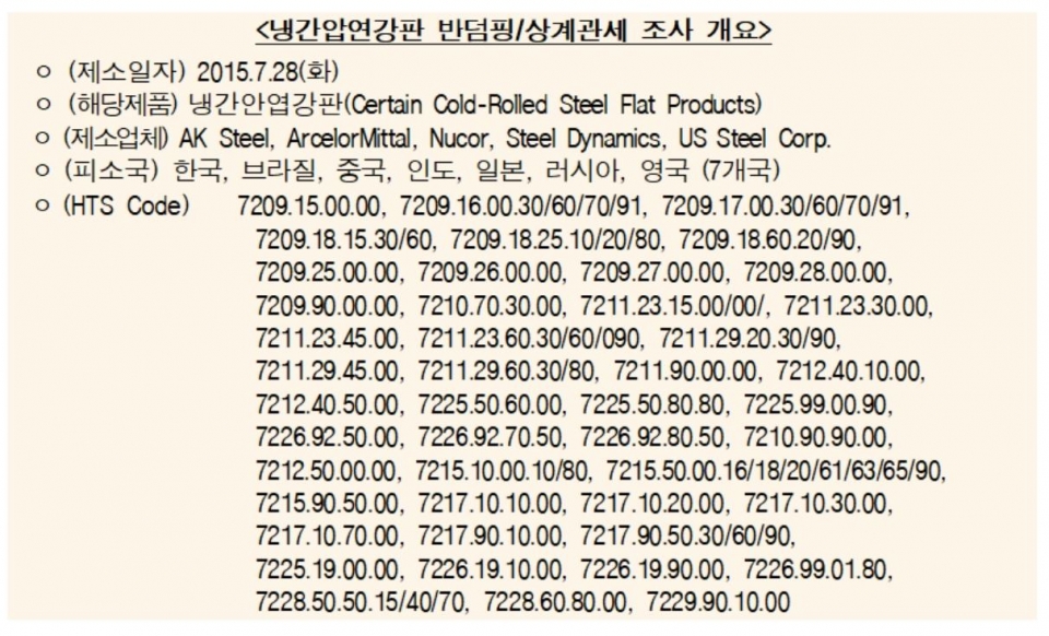 한국무역협회 워싱턴 지부는 "미국 상무부(DOC)가 한국산 냉간압연강판(Certain Cold-Rolled Steel Flat Products)에 대한 2020년도 상계관세 연례재심 예비판정 결과를 발표했다"고 전했다.