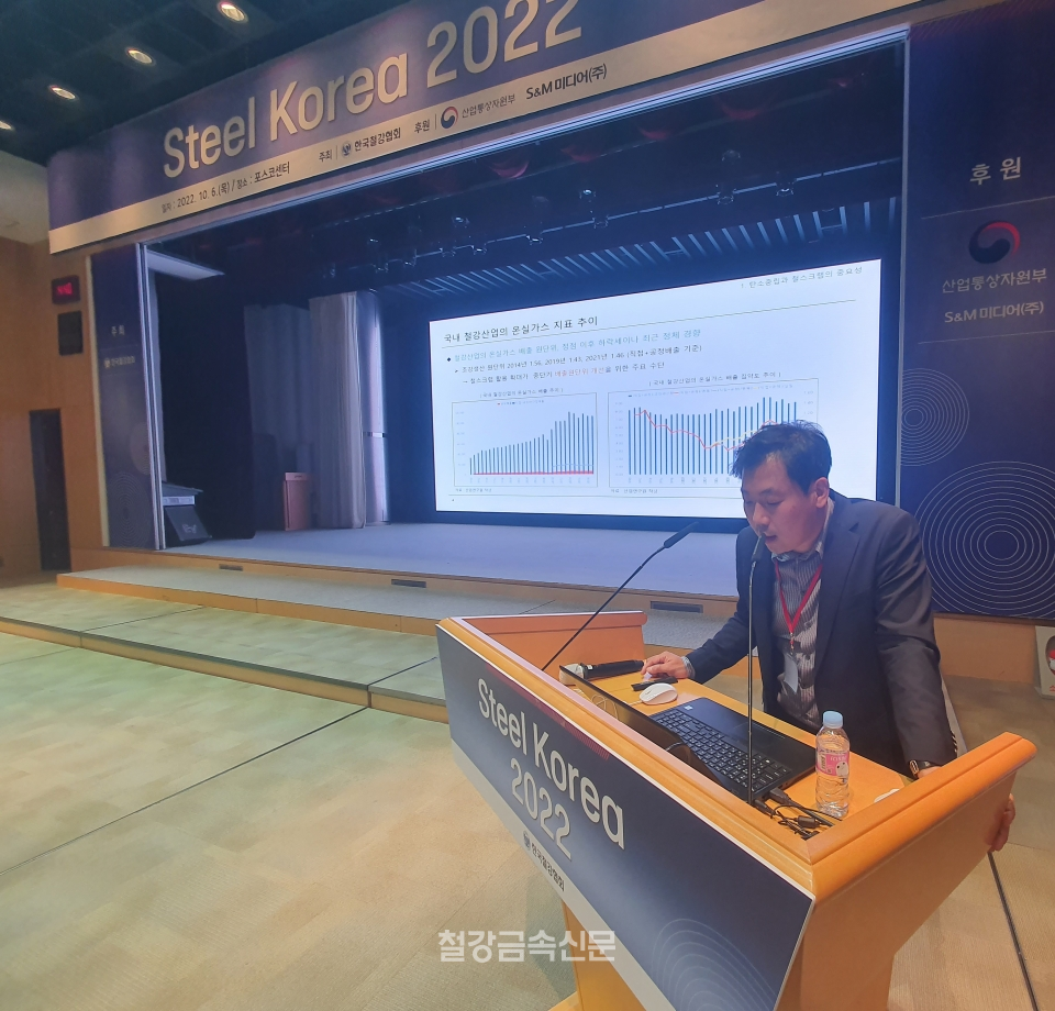 산업연구원 이재윤 실장은 6일 오후 '스틸코리아 2022'에서 탄소중립 주제와 관련해 '철스크랩 산업 경쟁력 강화 방안'을 발표했다.