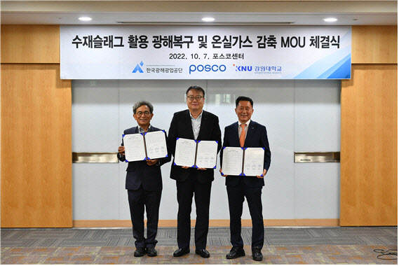 광해광업공단은 7일 서울 포스코센터에서 포스코, 강원대와 ‘철강 부산물 활용 광해복구 및 온실가스 감축 협력’ 양해각서를 맺었다고 밝혔다.