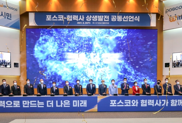 이런 가운데 포스코는 지난 2018년 최정우 회장 취임 후 ‘더불어 함께 발전하는 기업시민’ 경영이념을 기반으로 협력사의 경쟁력이 곧 포스코의 경쟁력이라는 점을 인식하고, 선도적으로 협력 직원 처우와 근무환경을 개선해 나아가면서 협력사와 함께 ‘희망’의 스토리를 써나가고 있다.
