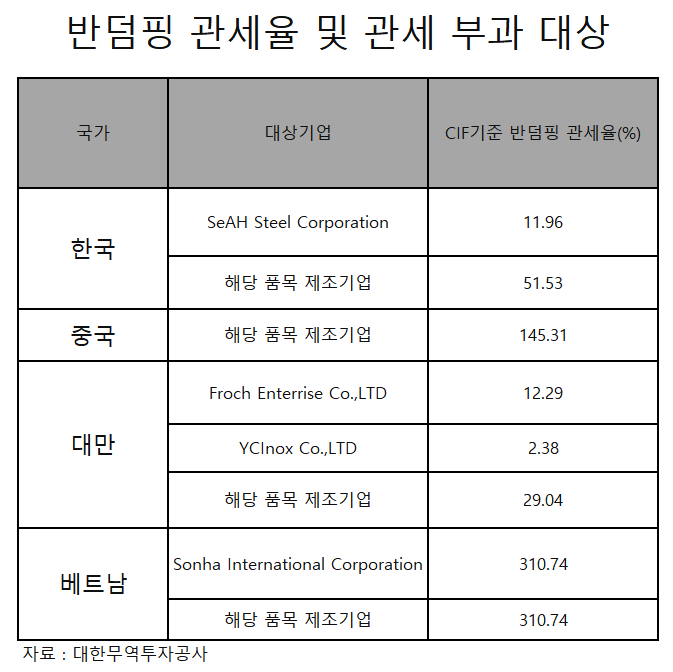 CIF 기준 세아제강 11.96% 그 외 한국기업 51.53% ‘세율 유지’