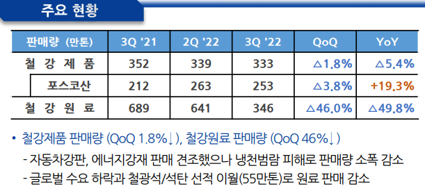 이 밖에도 포스코인터내셔널은 회사 무역법인의 메인 비즈니스 사업인 철강산업에 대해 철강 트레이딩은 제품 판매는 견조하였으나 글로벌 수요감소로 인해 철강 원료의 판매가 감소하며 매출액이 전분기 대비 20% 감소했다고 설명했다.