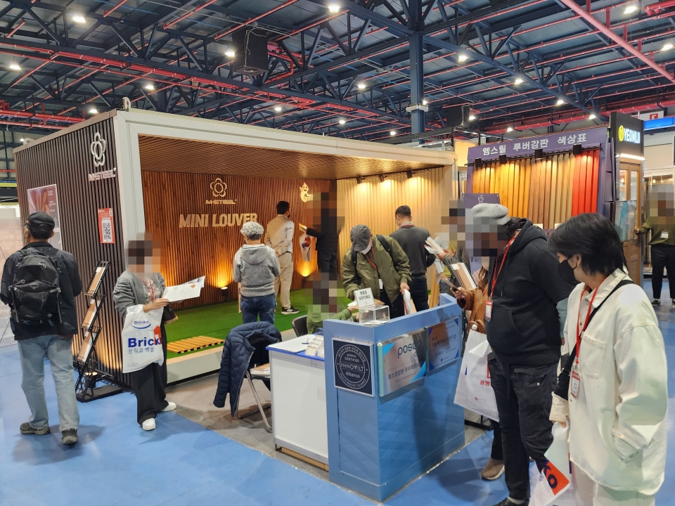 특히 올 10월 출시한 우드계 루버강판 라이트 컬러가 함께 전시됐다. 라이트 컬러는 기존 스탠다드 색상들과는 달리 건축 수요자들의 니즈를 최대 반영해 준비된 제품인 만큼 참관객들의 이목을 집중시켰다.