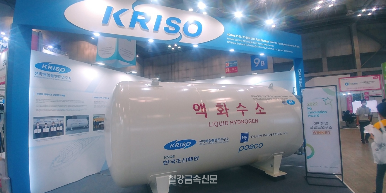전시회에서 눈에 띄는 점 하나는 선박해양플랜트연구소(KRISO)가 마련 부스였다. KRISO는 지난 2021년 4월 스테인리스강 생산자인 포스코와 선박용 액화수소 연료탱크 개발 협력을 맺은 바가 있다. 이번 전시회에서 KRISO는 포스코와의 공동 개발 성과로 400kg 316L/316HL 등으로 제작한 수소연료 탱크를 선보였다. 이 소재는 모두 국내 원천 액화수소 전용 신강재로 분류되고 있다. 해당 제품은 국제선급협회 인증을 획득했고 정부 인증 해양수산신기술로 등록됐다. 앞으로 KRISO와 포스코는 3,000톤급 친환경 해상테스트베드 개발에 열중할 계획이다.
