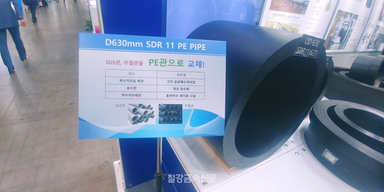 이러한 물 산업전에서 한가지 눈에 띄는 점은 이전에 비해 PE재 적용 파이프 업체들도 증가했다는 점이다. PE재는 열에 강한 폴리에틸렌을 소재로 적용한 관을 뜻한다. 폴리에틸렌은 주로 페트병과 가전제품 외관에 적용되곤 했는데 최근 물 관련 관 시장에서 사용처가 늘어나는 추세다. 물 산업에서 스테인리스강에 대적하는 가장 주목받는 라이벌 소재로 떠오르는 것.