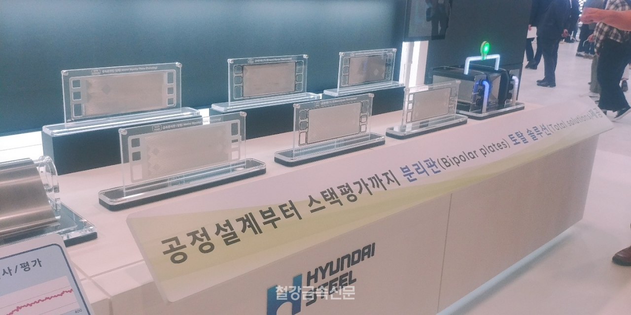 수소전시회에서 포스코모빌리티솔루션은 수소연료전지 금속분리판 ‘Poss470FC’를 선보였다. Poss470FC는 포스코가 수소연료전지 산업을 겨냥해 개발한 고전도 스테인리스 강종으로 타 소재 대비 △내식성 △전도성 △내구성 △균일성 등이 우수하다. 수소 산업의 가장 뜨거운 아이템인 수소전기차 부문에서도 스테인리스강이 주요하게 쓰이고 있음을 시사했다.