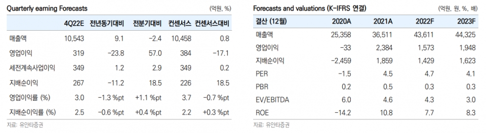 끝으로 이 연구원은 세아베스틸지주에서 두 자회사가 차지하는 비중이 절대적이라며 전기로 양사가 전력비 등에서 제조원가 부담이 커지고 있는 상황을 평가했다. 이현수 연구원은 “비용 증가를 효율적으로 상쇄할 방안이 필요하다”라며 “세아베스틸의 대형단조 부문은 여전히 손익이 부진하지만 CASK 사업 등을 통해 손익이 개선되고 있는 것으로 파악되고, 중장기적으로는 무계목강관을 활용한 수소 사업에 투자 및 세아항공방산소재의 항공소재 매출 확대가 기대된다”라고 분석했다.