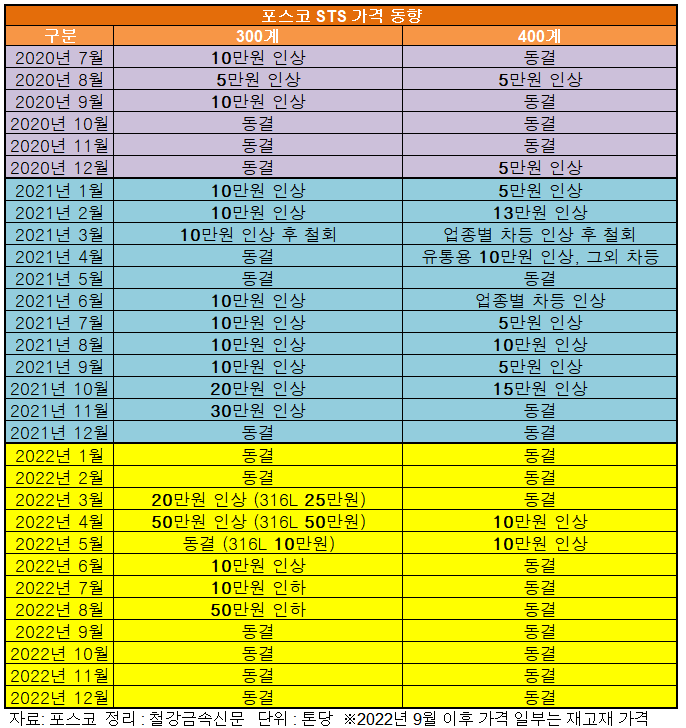 원료 가격 상승세와 에너지 비용 부담에도 12월 STS價 동결 결정...해외 동향과 정반대