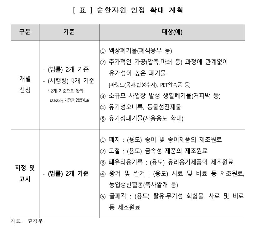 특히 이번 개정안에 포함된 순환자원 지정·고시제로 철스크랩을 포함한 폐지, 폐유리 등은 업체별 개별 신청 없이 일체 순환자원으로 인정된다. 폐기물이 순환자원으로 인정받으면 폐기물관리법상 규제를 받지 않고 운반·보관·사용에 제한이 없어진다.