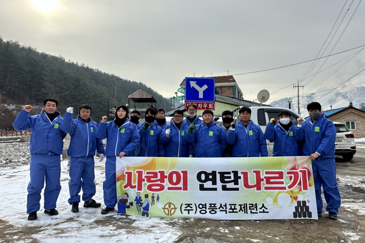 봉화군 석포면 7개리에서 각각 2가구씩 추천받아 선정한 난방 취약계층 14가구에 연탄 500장씩 모두 7,000장(540만원 상당)을 전달했다. 이날 영풍 석포제련소 임직원들은 영하권의 추운 날씨에도 불구하고, 직접 연탄을 줄지어 나르며 구슬땀을 흘렸다.