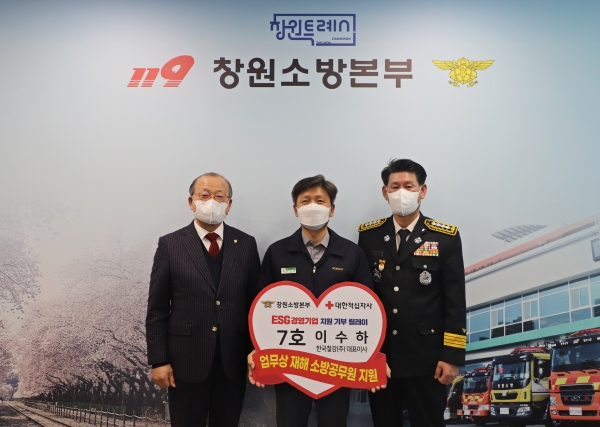 기부금 전달식은 소방본부장실에서 진행됐으며, 한국철강 이수하 대표이사를 비롯해 창원소방본부장 등 관계자 등이 참석했다.