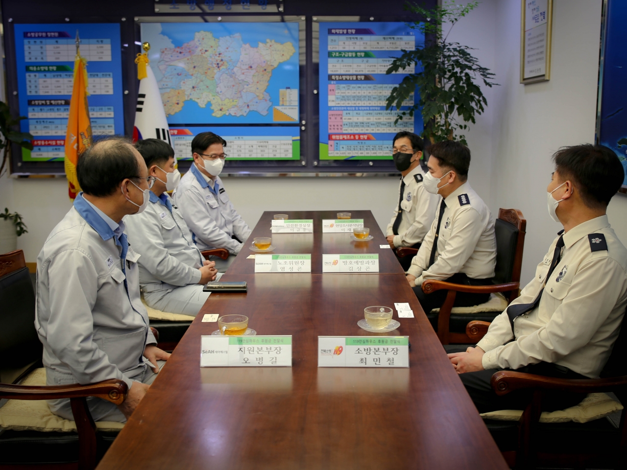 지난 13일, 전라북도청에서 세아베스틸 노사가 전북 소방본부에 119안심하우스 관련 기부금을 1,000만원을 기탁했다. 이날 전달식에는 세아베스틸 측에서 오병길 지원본부장과 이규웅 안전환경실장, 염선곤 노조위원장 등이, 전북 소방본부에선 최민철 전북소방본부장 등이 참석했다.