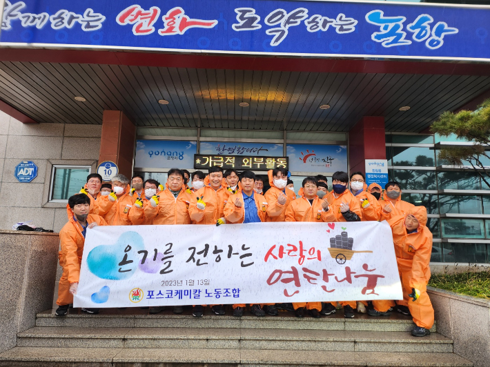 한편, 포스코케미칼 노동조합은 연말연시 나눔 봉사활동을 매년 펼치고 있다. 지난 해에는 청림동에 거주하는 독거 어르신들에게 삼계탕과 코로나 방역용품을 기부한 바 있다.
