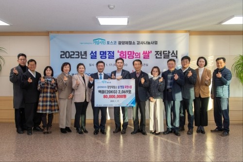 광양제철소(소장 이진수)는 설날을 앞고 지난 17일 광양시청에서 2023년 설 명절 ‘희망의 쌀’ 전달식을 가졌다.