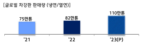 우선 판재 부문에서는 글로벌 자동차 생산 정상화에 따른 판매 확대를 추진한다. 국내에서는 부품이슈 완화에 따른 자동차 강판 수요 회복에 적극 대응하고, 해외에서는 실수요 중심 판매와 더불어 전략강종인 핫스탬핑강 판매를 확대한다. 현대제철은 2021년 75만 톤, 2022년 82만 톤을 기록했던 글로벌 자동차 강판 판매량이 올해 110만 톤에 달할 것으로 예상했다.