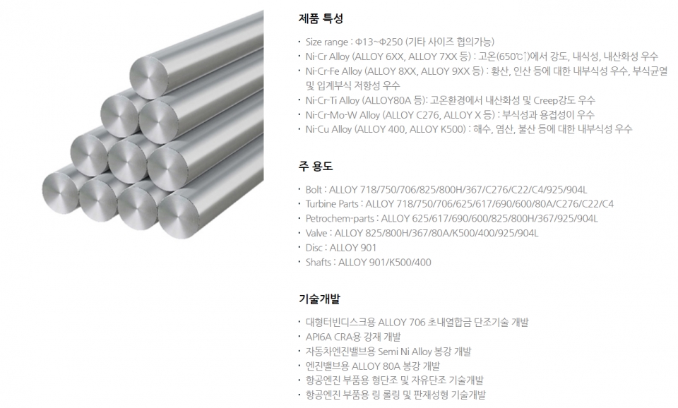 다양한 특수합금 제품 생산 능력과 기술이 강점