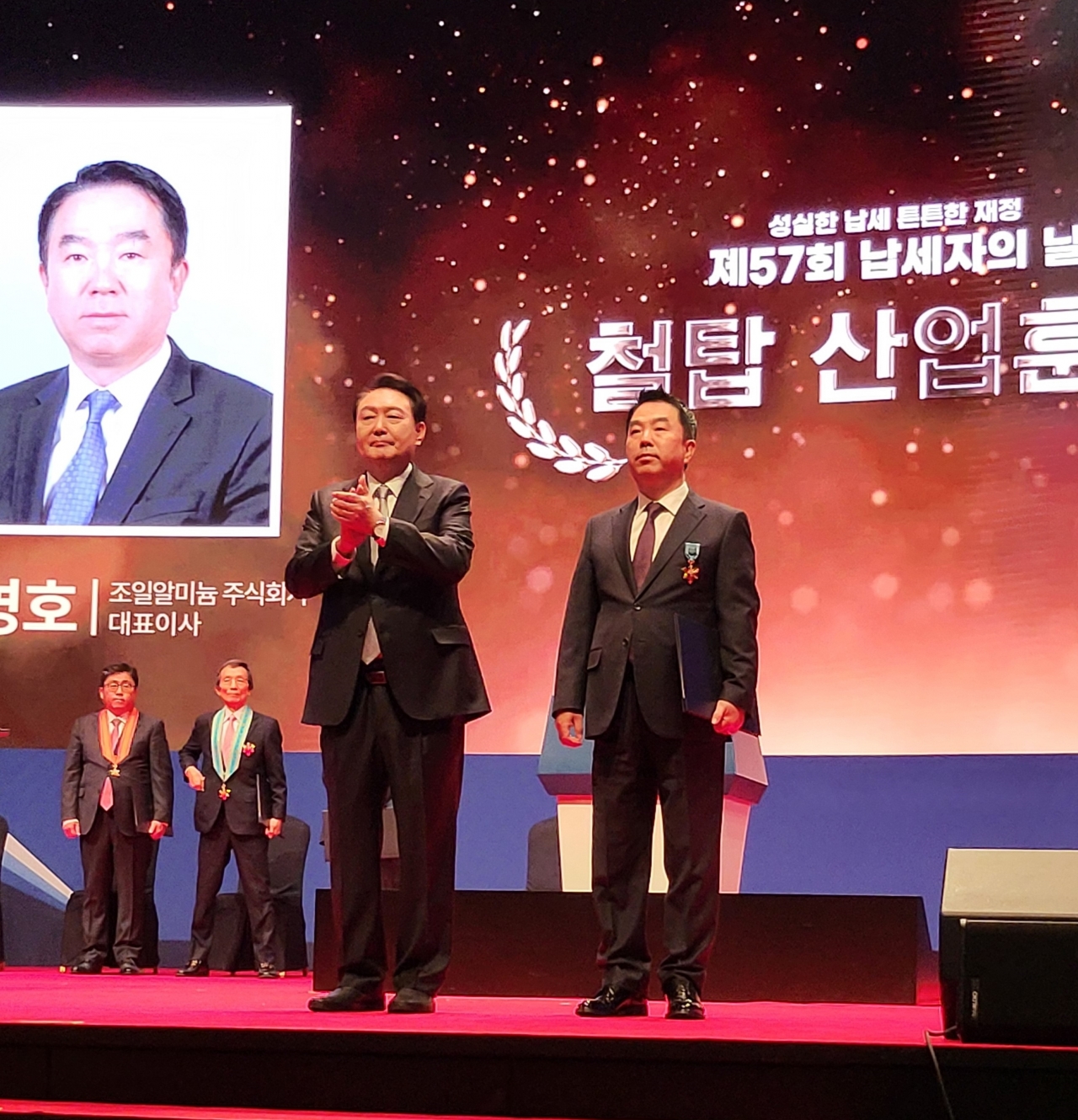 철탑산업훈장은 국가 산업 발전에 기여한 공적이 뚜렷한 자에게 수여한다. 조일알미늄은 1974년 설립 이후 50년간 알루미늄판을 생산, 국내외에 제품을 꾸준히 공급하며 국내 산업 발전에 이바지한 공을 인정받았다. 조일알미늄은 이차전지용 소재뿐 아니라 건설 자재, 식음료용 포장재, 전자제품 부품 소재 등 다양한 분야에 알루미늄판을 공급하고 있다.