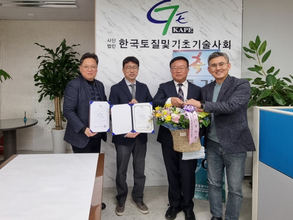 (왼쪽부터 토기회 최은석 기술인증 부회장, 엠에스빌트 김시년 사장, 김광호 이사, 토기회 김종석 회장)