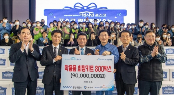광양제철소(소장 이진수)가 지난 8일 광양시 포스코 어울림체육관에서 도움의 손길이 필요한 지역 아동들을 위한 ‘새학기 학용품 희망키트’를 제작·전달하며 아이들의 새학기 출발을 응원했다.