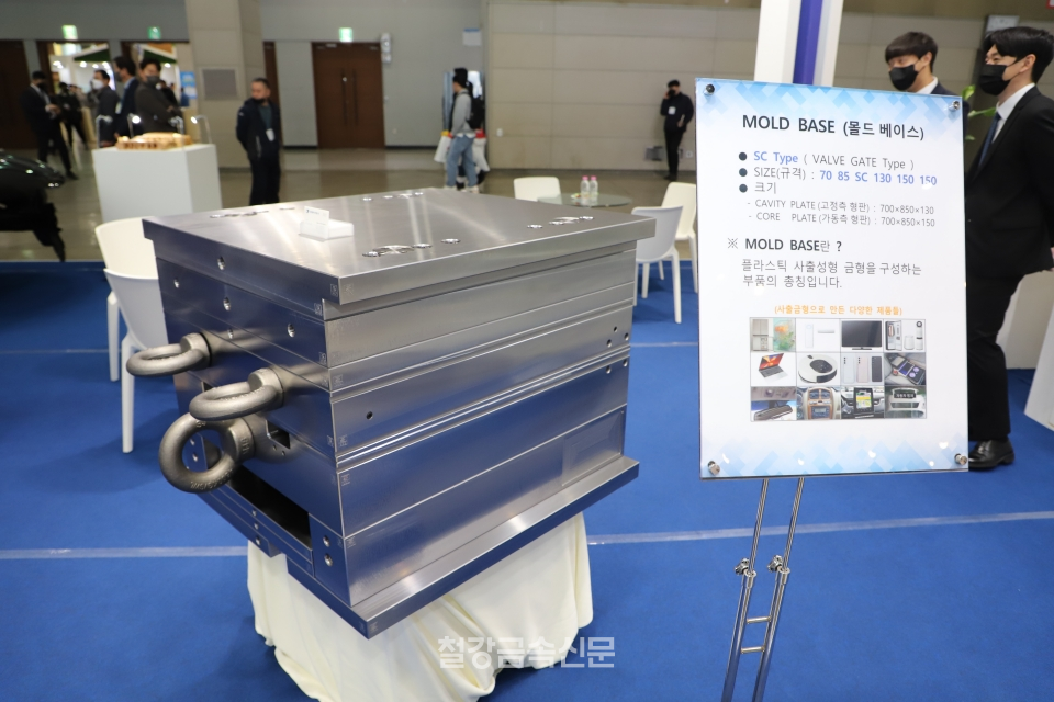 특히 신라엔지니어링은 르노코리아의 자동차 모델 ‘QM6’ 생산에 적용하고 있는 금형과 차량 문 및 차량 전후면 적용 예시물 등을 전시했다. 아울러 회사는 플라스틱 사출 성형 금형 부분에 적용할 수 있는 SC(VALVE GATE) 타입의 몰드베이스도 선뵀다.