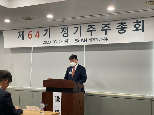한국사회복지회관 대회의실에서 열린 세아제강지주 제64기 정기주주총회에서 재무제표 (이익잉여금 처분계산서 포함) 및 연결재무제표 승인의 건을 처리했다. 또 정관 변경의 건과 이사 선임의 건, 이사 보수 한도 승인의 건을 통과시켰다.