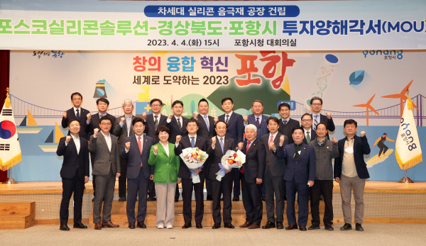 포스코실리콘솔루션은 4일 포항시청에서 경북도, 포항시와 투자협약을 맺었다. 포항시와 경북도는 4일 포항시청 대회의실에서 이달희 경상북도 경제부지사, 김남일 포항시 부시장, 유병옥 포스코홀딩스 부사장, 이재우 포스코실리콘솔루션 대표이사 등 산학연 관계자 50여 명이 참석한 가운데 포스코실리콘솔루션과 3천억원 규모의 대규모 투자협약을 체결했다.