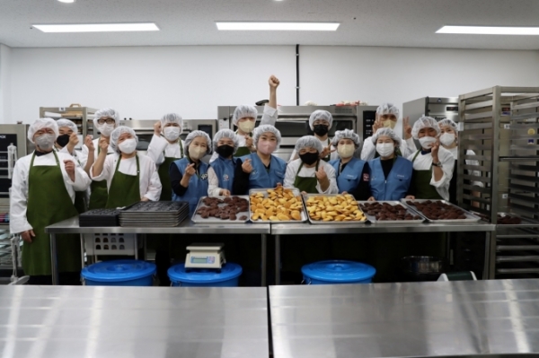 이날 전달된 빵과 쿠키는 포스코 1% 나눔재단이 지원하는 '서산나래 발달장애인 제과제빵사 전문 양성교육 사업' 교육생과 광양제철소 임직원 가족들이 직접 만든 것이다. 이들 제과제빵사는 지난해 6월부터 전문 제과제빵사 양성과정에 참여하며 공동체 일원으로 나아가는 준비를 했다.