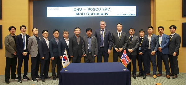 포스코이앤씨가 26일, 세계 최대 해상풍력발전 인증기업인 노르웨이의 DNV(Det Norske Verias)社와 국내 해상풍력 사업협력을 위한 업무협약을 체결했다.
