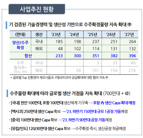 구동모터코아 수주 2027년까지 400만대 규모 확보...“국내외 생산능력 증대할 것”