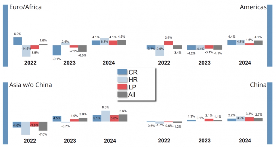 2024년에는 모든 대륙, 모든 강종에서 소비량 증가 예상