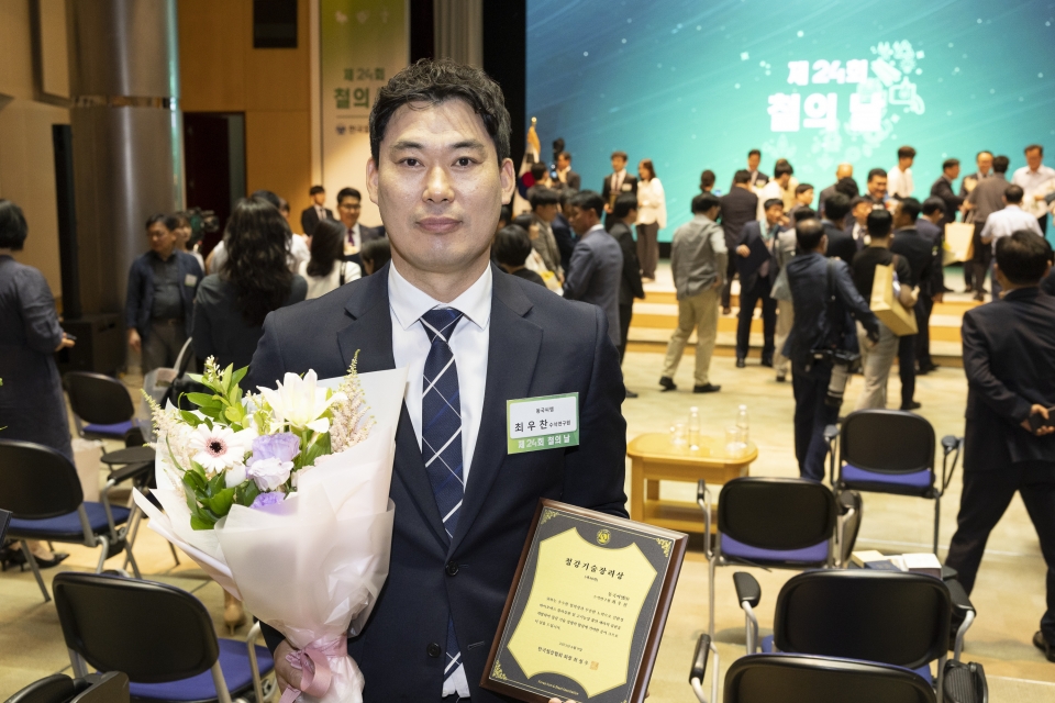 24회째를 맞은 철의날 기술장려상에는 동국씨엠 최우찬 수석연구원이 선정됐다.