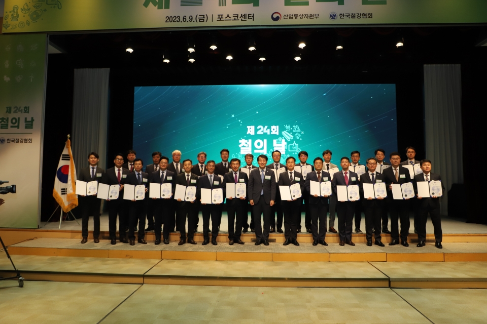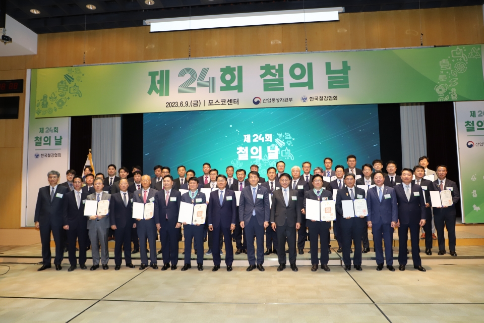 한국철강협회가 6월 9일 오전 10시 30분 포스코센터 서관 4층 아트홀에서 산업통상자원부 장영진 차관, 한국철강협회 최정우 회장, 현대제철 안동일 사장, 동국제강 최삼영 대표, KG스틸 박성희 사장, 세아제강 이휘령 부회장, TCC스틸 조석희 부회장 등 철강업계 관계자 200여 명이 참석한 가운데 제24회 철의 날 기념행사를 열고 철강업계 발전과 화합을 다졌다.