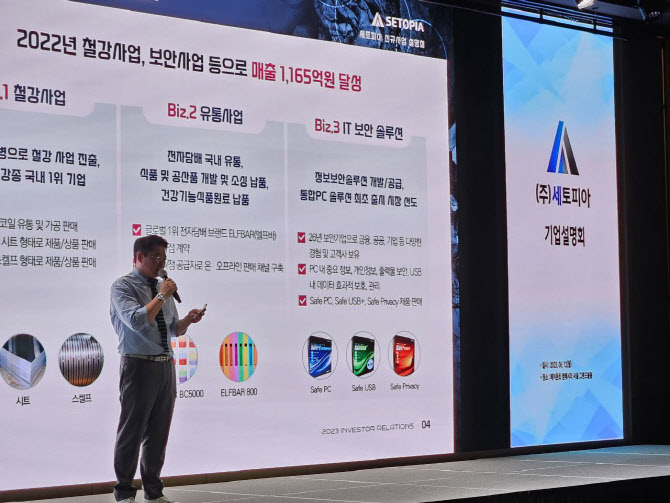 세토피아 서상철 대표가 지난해 스테인리스 사업 인수로 인한 안정적 매출 확보와 올해 새로운 사업으로 시작하는 희토류 사업에 대한 기업설명회를 개최했다.
