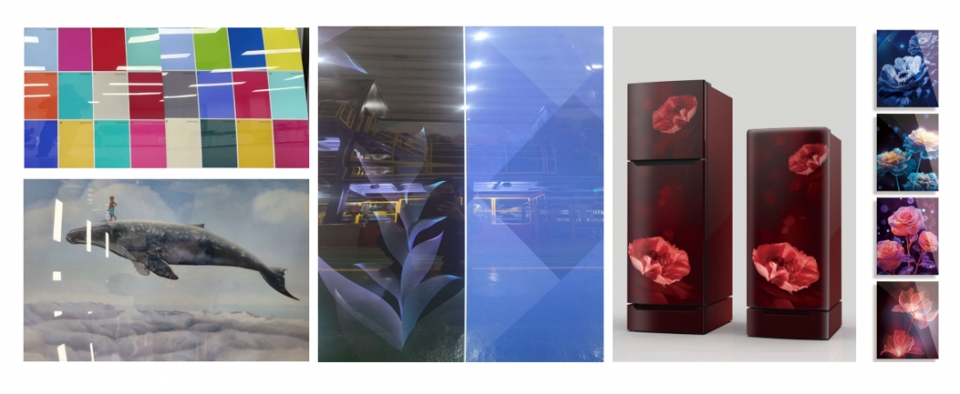 특히 대리석 등을 표현한 프린트 강판 위에 초박막 유리 소재를 접합한 제품으로 선영도를 높인 것이 장점이다.