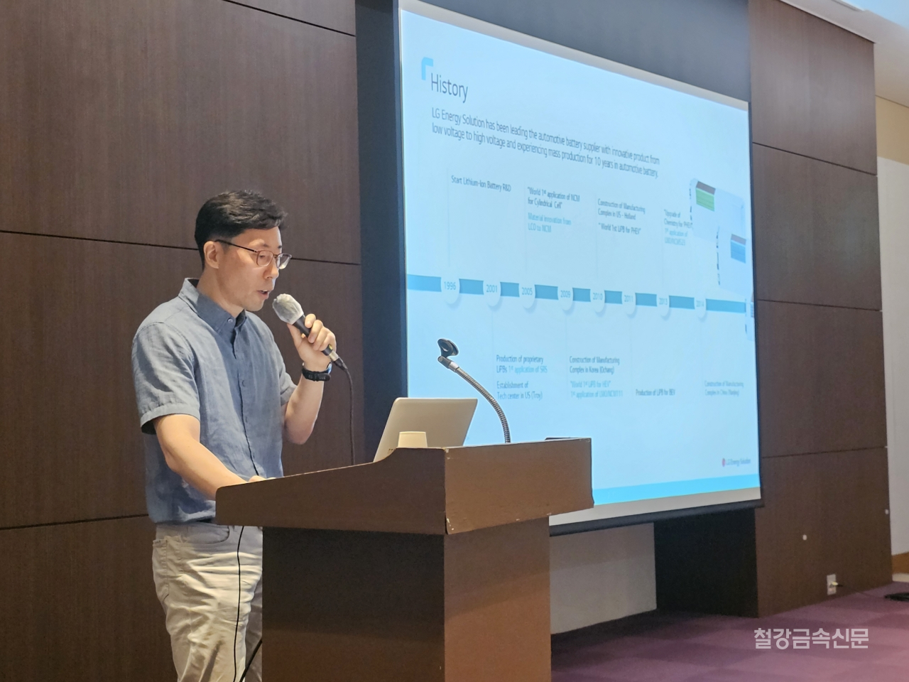 세미나 첫 시간에는 '전기차용 양극소재 개발방향'이라는 주제로 국내 최대 베터리 제조사인 LG에너지솔루션의 이상욱 팀장의 발표가 진행됐다.