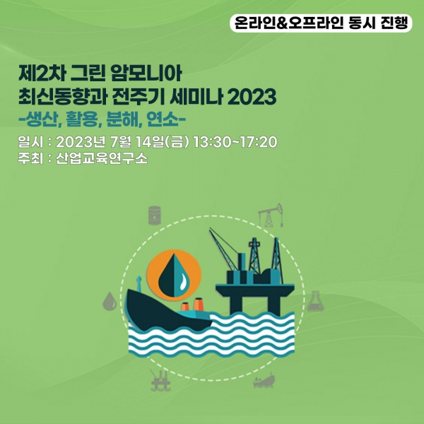 암모니아는 최근 수소 운송과 저장, 혼소발전 등 수소의 기술적 난제를 해결할 지름길로 여겨지면서 수소 경제를 앞당길 열쇠로 떠오르고 있는 가운데 산업교육연구소(www.kiei.com)는 오는 7월 14일(금)에 ‘제2차 그린 암모니아 최신 동향과 전주기 세미나 2023’을 온라인, 오프라인 동시 개최한다고 밝혔다.