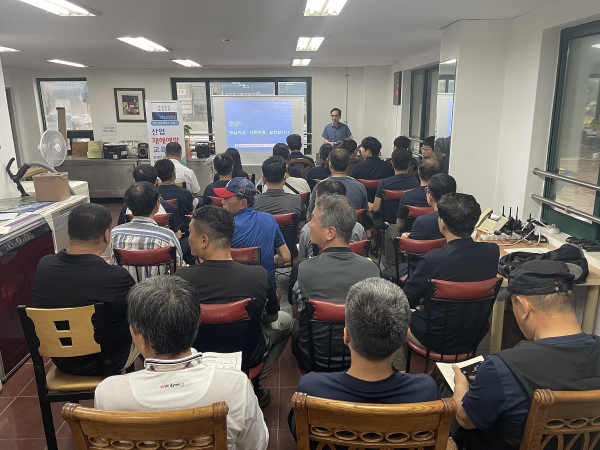 강사로 나선 천프로안전교육연구회 천강대 회장은 작업 현장을 둘러보며 산재 발생률이 높은 끼임사고, 낙하물로 인한 산업현장에서의 안전사고 사례를 중심으로 ▲최근 산업재해 발생 유형 및 특징 ▲위험관리 실패・성공 사례 ▲안전사고 예방 대책 ▲사고재발방지 실천 사항 등에 대해 강의했다.